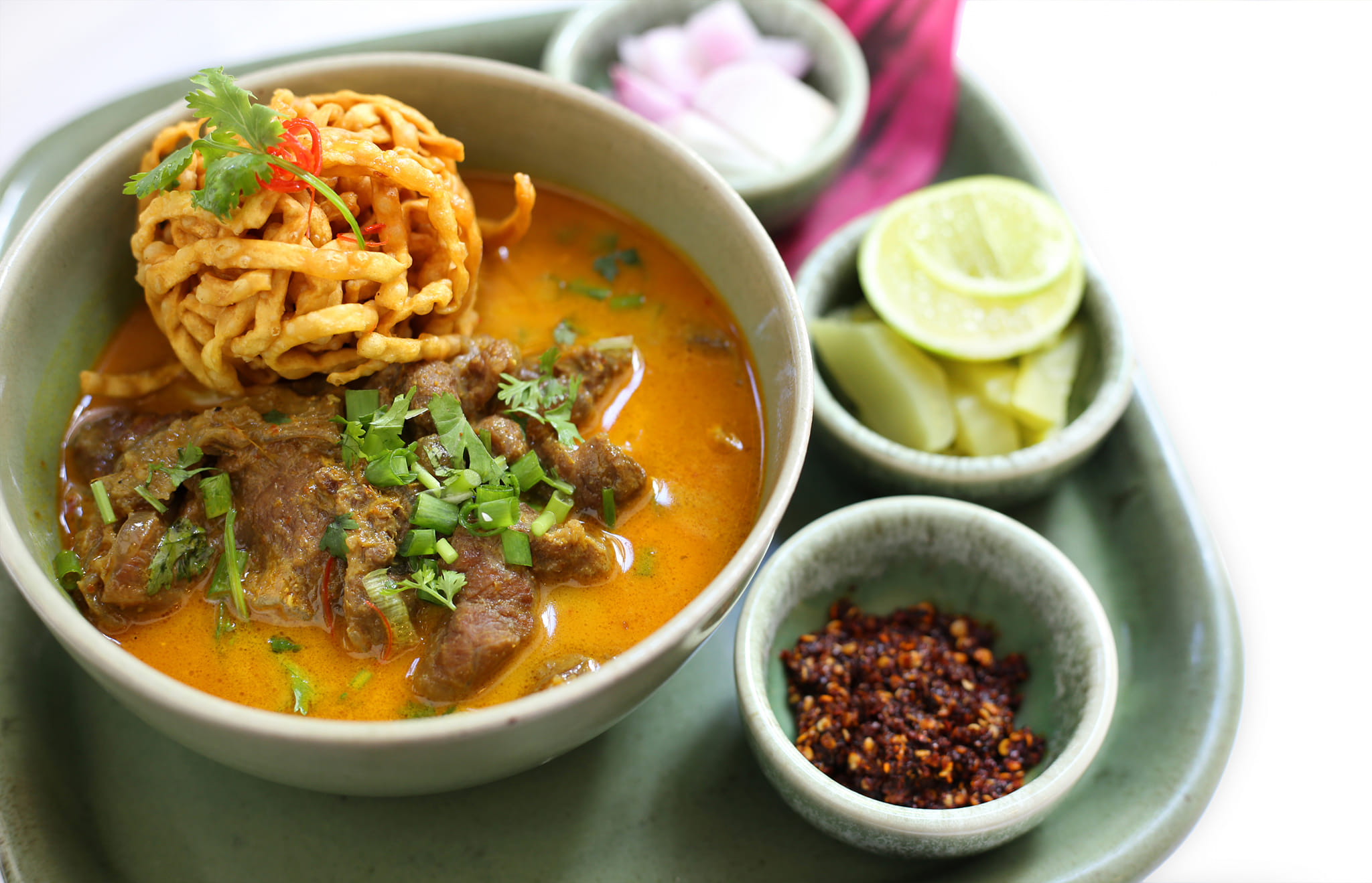 En Na Chantra, cada plato es un viaje de sabores que parte de las montañas y campos de Chiang Mai y llega a su mesa, envuelto en aromas de hierbas tailandesas, especias y un cuidado meticuloso en cada detalle.